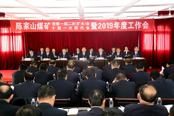 1月11日上午,陳家山煤礦一屆二次黨委(擴大)會、十屆一次職代會暨2019年工作會在該礦機關四樓會議室隆重召開,礦黨委各委員、各領導,十屆職代會職工代表,機關各科(部)室負責人和基層單位負責人共計110余人參加了會議。