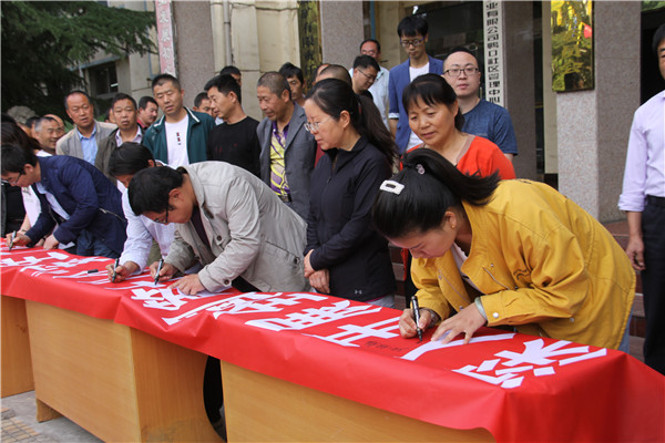 最后,干部職工按照安排依次上前簽字。(李勝會)