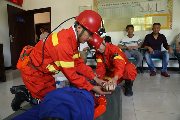 隨后,宣講團(tuán)一行來到該礦區(qū)隊學(xué)習(xí)室, 4名優(yōu)秀安全宣講員王艷、段雙武、田有超、魏璐在礦區(qū)隊樓皮帶隊學(xué)習(xí)室為我們帶來了醫(yī)療救護(hù)知識情景演練,通過現(xiàn)場情景演練,還原了醫(yī)療救護(hù)的真實場景,讓我們記憶猶新,在面對安全危險時候,我們都要學(xué)會進(jìn)行自救,這是一種本能,也是一種保護(hù)意識,互相之間形成互救力量,在全礦上下形成“人人都是救護(hù)隊員”的濃厚氛圍。