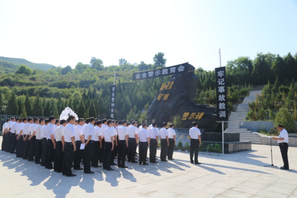 該礦黨委負(fù)責(zé)人、礦長王體文在講話中指出,此次在遇難礦工警示碑前召開安全警示教育大會,其目的就是沉痛緬懷在十五年前特大瓦斯爆炸事故中遇難的166名礦工兄弟,通過祭奠亡靈,寄托哀思,深切表達(dá)對遇難礦工的悼念之情,警示全礦各級領(lǐng)導(dǎo)干部,引以為戒、牢記事故教訓(xùn),進(jìn)一步增強(qiáng)紀(jì)律意識、規(guī)矩意識,始終做到頭頂利劍高懸,心中警鐘長鳴。要從嚴(yán)落實(shí)安全生產(chǎn)管理責(zé)任,進(jìn)一步堅(jiān)定實(shí)現(xiàn)安全“零”目標(biāo)的信心和決心。他要求,一是認(rèn)清形勢,狠抓落實(shí),全力以赴抓好當(dāng)前安全生產(chǎn)工作。組織全礦副科級以上管理干部召開安全警示教育會,就是要大家充分認(rèn)清當(dāng)前形勢,時(shí)刻保持如臨深淵、如履薄冰的危機(jī)感,從思想深處高度重視安全工作,切實(shí)把安全放在心上,責(zé)任扛在肩上、落實(shí)在行動上,以敬畏生命,對職工高度負(fù)責(zé)的精神,以“抓鐵有痕、踏石留印”的作風(fēng),把安全生產(chǎn)每一項(xiàng)工作、每一個(gè)環(huán)節(jié)做實(shí)、做細(xì)、做到位。二是要瞄準(zhǔn)靶心、精準(zhǔn)發(fā)力,堅(jiān)決實(shí)現(xiàn)安全“零”目標(biāo)。全礦上下要聚焦問題抓整改,嚴(yán)格按照“以學(xué)促考、以考促學(xué)”要求,抓好“全員考試”工作落實(shí),強(qiáng)化“四員兩長”管理,加強(qiáng)“安全生產(chǎn)標(biāo)準(zhǔn)化”建設(shè),持之以恒抓好“安全生產(chǎn)月”各項(xiàng)活動落實(shí)。