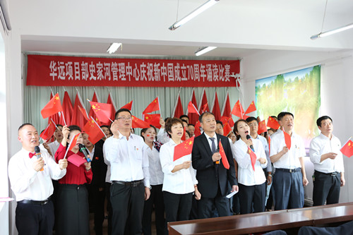 誦讀在全體干部職工一首《我的祖國(guó)》大合唱中落下帷幕。