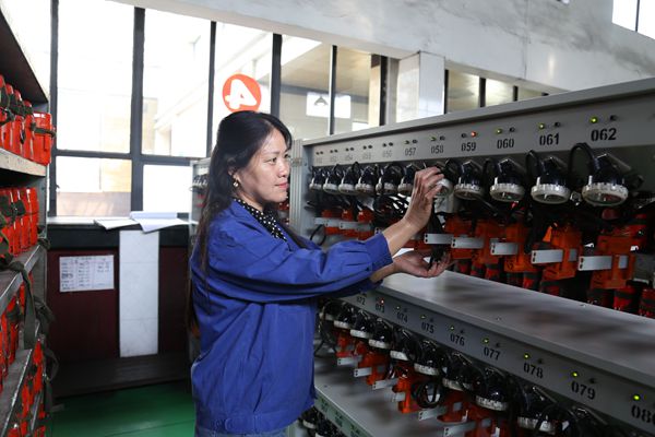 “礦燈是礦工兄弟的‘眼睛’?!鼻鍧?、維護、充電、檢修,每天重復的動作,不斷地穿梭在十幾排燈架之間,不僅沒讓充電房的女工感到厭煩,反而多了幾分神圣。她們在工作期間,嚴格確保燈線沒有開裂、燈圈沒有松動、照明亮度可靠、充電接觸及充電電壓到位,避免給職工的井下作業(yè)帶來耽擱。