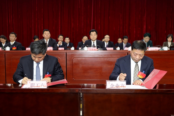 會上,企業(yè)方代表與職工方代表簽訂了公司2020年度《工資集體合同》,表決通過了大會有關(guān)決議,通報(bào)了民主評議公司領(lǐng)導(dǎo)班子和領(lǐng)導(dǎo)人員結(jié)果情況。