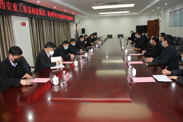3月2日下午,西安重裝集團董事長李德鎖、黨委書記向新剛帶領有關部門人員和銅川煤機公司有關負責同志到公司開展對標交流。公司黨委書記、執(zhí)行董事劉水利,副總經(jīng)理、總工程師師同民,副總經(jīng)理邢彥民和公司有關部門和機電分公司負責同志等參加了座談交流。