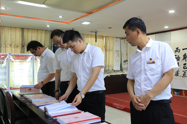 胡寶銅一行4人到礦后,在該礦領(lǐng)導(dǎo)陪同下,先后參觀了“廉潔文化長廊”“廉潔文化教育室”等廉潔文化建設(shè)陣地,觀摩了“鋼鐵之隊(duì)”綜掘三隊(duì)、“廉韻之隊(duì)”綜掘五隊(duì)等基層黨支部廉潔文化建設(shè),觀看了企業(yè)宣傳片《廉潔護(hù)航》以及綜掘五隊(duì)黨風(fēng)廉政建設(shè)工作特色PPT課件。就深化企業(yè)廉潔風(fēng)險防控機(jī)制、廉潔企業(yè)創(chuàng)建、廉潔文化示范建設(shè)等方面查看了廉潔文化資料,深入了解了該礦黨風(fēng)廉政建設(shè)工作圍繞廉潔文化“五進(jìn)”活動落地、落實(shí)對業(yè)務(wù)工作的促進(jìn)以及取得的實(shí)際成效。