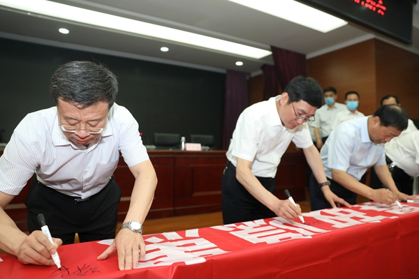 隨后,公司領(lǐng)導(dǎo)及參會人員在“消除事故隱患,筑牢安全防線”主題宣傳條幅上鄭重簽名,莊嚴(yán)宣示樹牢安全發(fā)展理念,壓緊壓實安全責(zé)任,促進(jìn)企業(yè)安全生產(chǎn)水平提升,為公司高質(zhì)量發(fā)展?fàn)I造安全穩(wěn)定的發(fā)展環(huán)境的信心和決心。