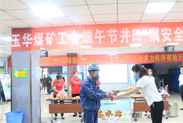 6月25日,全國(guó)第19個(gè)“安全生產(chǎn)月”活動(dòng)深入開(kāi)展之際,又適逢端午節(jié),玉華煤礦工會(huì)在副井口候罐大廳,舉辦了一場(chǎng)“節(jié)日囑安全、送祝?!被顒?dòng),為即將入井職工送上一枚香甜的粽子,端上一杯熱茶,道一聲端午節(jié)安康。