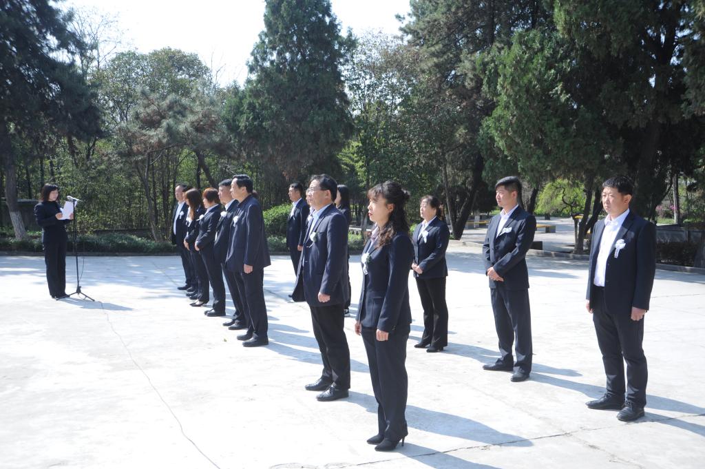 在烈士紀(jì)念碑前,大家莊嚴(yán)肅立向烈士鞠躬默哀,全體人員瞻仰烈士紀(jì)念碑并向烈士敬獻花籃,整理緞帶及致詞,大家將手中的鮮花敬獻烈士,表達崇敬之情。