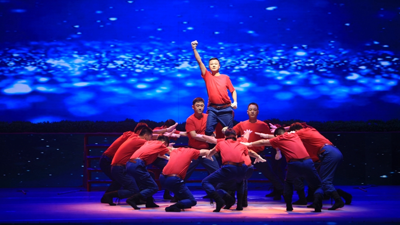 表彰大會(huì)結(jié)束后,分設(shè)“難忘歲月、魅力礦山、奮斗逐夢(mèng)”三個(gè)篇章的文藝演出,在開場(chǎng)舞《旗幟》中拉開序幕。
