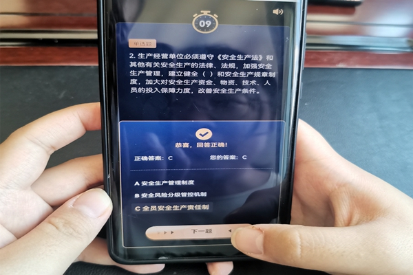 為全面營(yíng)造學(xué)法、守法、用法的濃厚氛圍,該公司在做好線下安全宣傳教育的同時(shí),積極探索安全教育培訓(xùn)新模式,開展“掌上”安全教育,動(dòng)員全體員工以鏈工寶APP為平臺(tái),廣泛參與“新安法知多少”網(wǎng)絡(luò)答題競(jìng)賽活動(dòng),通過(guò)每日通報(bào)積分情況,督促員工每日登錄學(xué)習(xí)答題,掀起了比知識(shí)、賽積分、爭(zhēng)做“安全達(dá)人”的學(xué)習(xí)新熱潮。