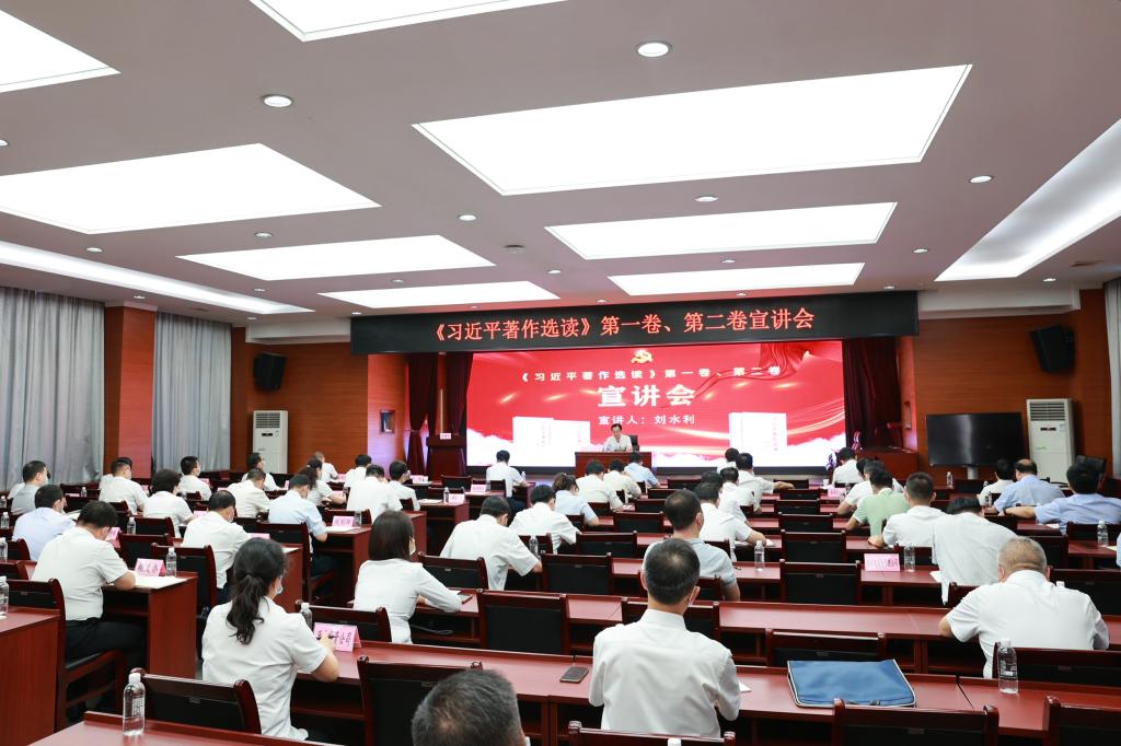 宣講中,劉水利從“深刻認(rèn)識(shí)《習(xí)近平著作選讀》出版發(fā)行的重大意義、準(zhǔn)確把握《習(xí)近平著作選讀》的豐富內(nèi)涵和精神實(shí)質(zhì)、學(xué)習(xí)領(lǐng)會(huì)《習(xí)近平著作選讀》的主要篇目、不斷把學(xué)習(xí)宣傳貫徹《習(xí)近平著作選讀》引向深入”四個(gè)方面,以深入淺出、準(zhǔn)確生動(dòng)的語(yǔ)言,對(duì)《習(xí)近平著作選讀》第一卷、第二卷進(jìn)行了宣講解讀。