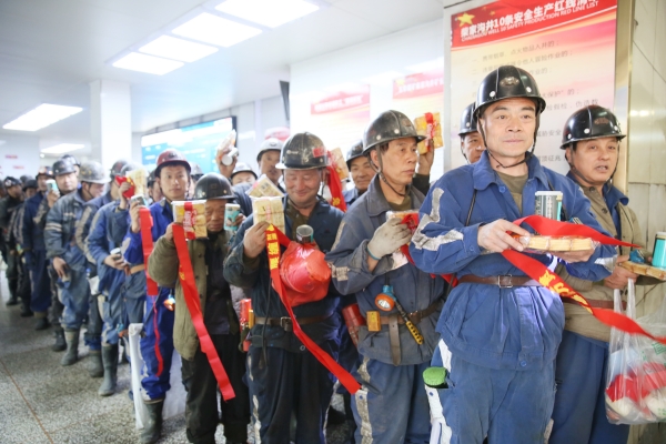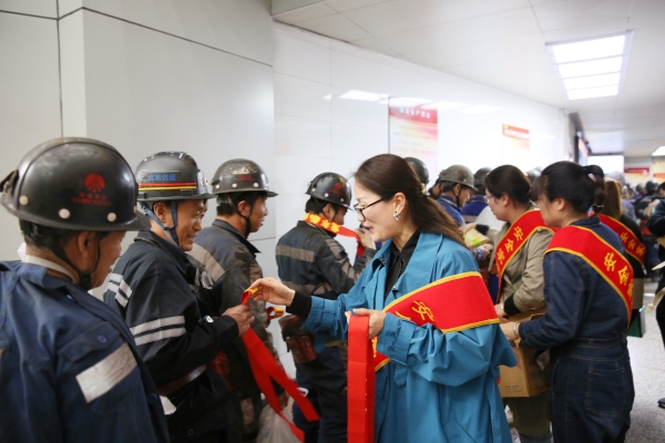 “師傅,你辛苦了,祝您五一勞動(dòng)節(jié)快樂(lè),井下作業(yè)注意安全!”女工協(xié)管員們一聲聲親切的問(wèn)候和真切的關(guān)懷在職工耳邊響起,她們將象征著身體健康、平安順?biāo)斓募t腰帶、飲品及饃片遞到職工手里。礦工兄弟們高興地接過(guò)一份份問(wèn)候與敬意,紛紛表示在以后工作中不斷增強(qiáng)安全意識(shí),嚴(yán)格按章操作,杜絕違章蠻干,為礦井安全生產(chǎn)盡職盡責(zé),為家庭幸福堅(jiān)守安全底線(xiàn)。