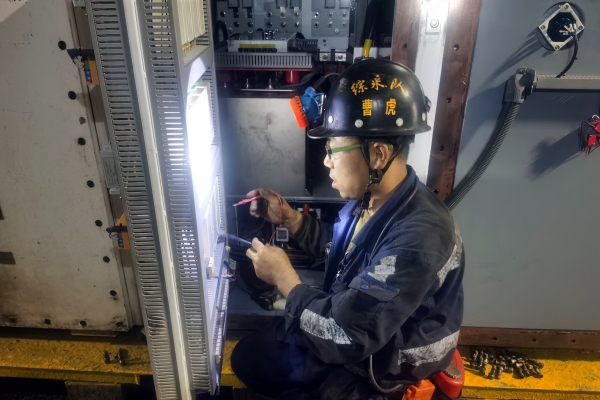 該礦42226工作面安裝智能化綜采設備期間,曹虎認真詳細地翻閱相關資料,了解新設備的性能和特點。設備安裝調試期間,他一絲不茍地檢查每一個部件、每一個參數,確保設備能夠穩(wěn)定運行。42221綜采工作面轉載機因突發(fā)故障無法啟動,當班電工無法排查出故障原因,影響到礦井正常生產,正在宿舍休息的曹虎得知這一情況后,立即趕往井下作業(yè)現場,憑借著豐富的實踐經驗對故障原因進行細致的排查,在分別對轉載機電纜和電機進行測試后,對照圖紙一步步查看變頻器完好情況,在變頻器驅動回路電阻集成板上發(fā)現了電阻擊穿現象,經過測量后,確定該電路板電阻的擊穿是導致此次故障的主要原因,經過和同事們數小時的通力協(xié)作,電阻集成板成功更換,故障被順利修復,轉載機供電系統(tǒng)恢復正常,再一次發(fā)出了“歡快”的轟鳴聲。
