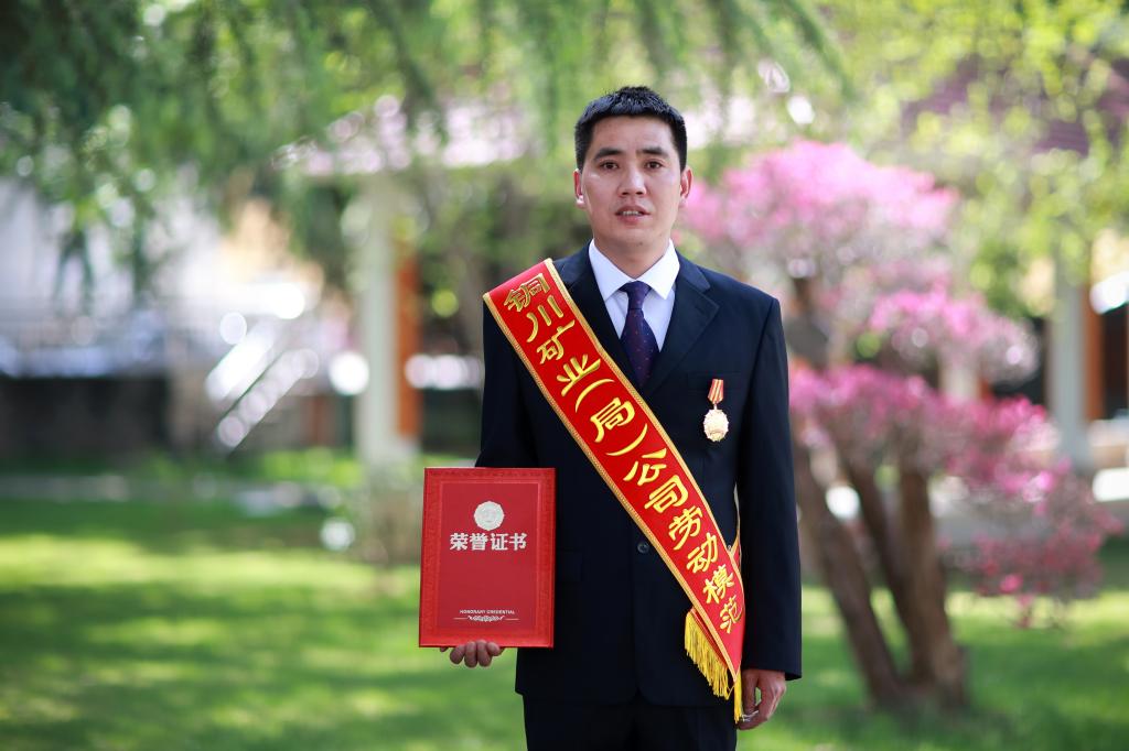 千尺井下,采煤機(jī)旁,總能看到一個濃眉大眼、身形挺拔的青年人,每日里穿梭在智能綜采設(shè)備之間巡查。他就是剛剛榮獲銅川礦業(yè)公司2023-2024年度勞動模范稱號,來自玉華礦綜采隊機(jī)電檢修班長的朱學(xué)敏,十六年寒來暑往,他以匠心為筆、以擔(dān)當(dāng)為墨,在煤海深處書寫著勞動奮斗篇章。