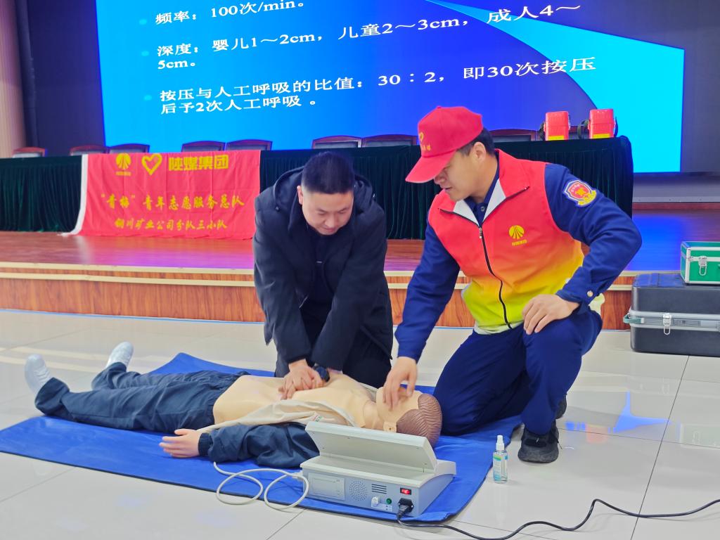 “同志,按壓時注意力度和頻率,雙手臂要垂直!”在青崗坪煤礦的培訓(xùn)教室內(nèi),一場別開生面的“急救課”正在進(jìn)行。青年志愿者們分步驟演示心肺復(fù)蘇操作流程,從判斷意識、呼叫救援,到胸外按壓、人工呼吸,每一個動作都力求標(biāo)準(zhǔn)規(guī)范。職工們圍成一圈,仔細(xì)聆聽,輪流上陣實操。